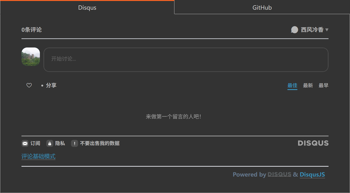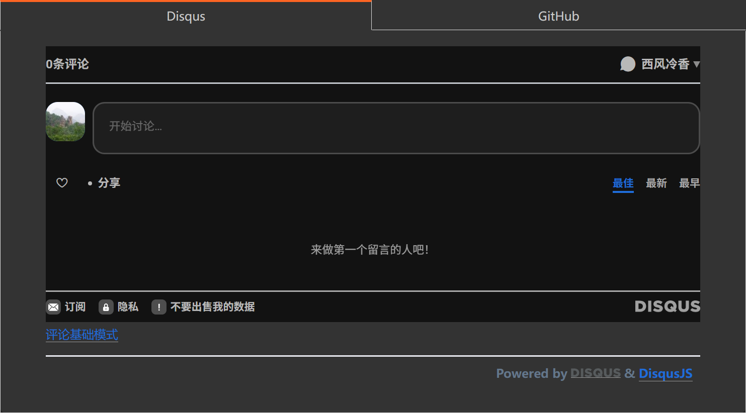 这个比较麻烦。主要是 Disqus 自带的暗色模式背景颜色特别深(#121212),跟旁边的背景颜色差别比较大。两者又是直接嵌套在一起,也没有边界,显得特别突兀。而 Disqus 的评论部分又是一个 <iframe>,没有办法直接修改里面元素的颜色。