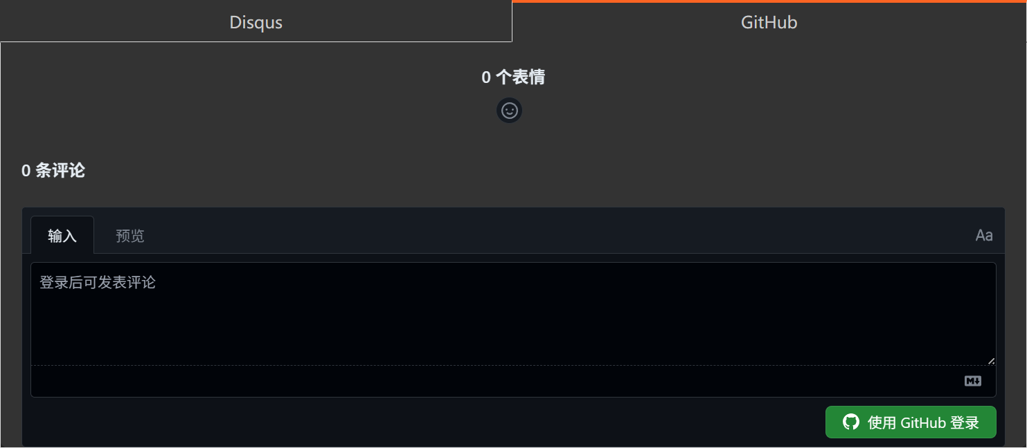 Giscus 自带的 preferred_color_scheme 主题支持自动切换 Github Light 和 Github Dark 两种主题,但是 Github Dark 主题的问题和上面 Disqus 类似,颜色和 NexT 的深色模式背景不搭。